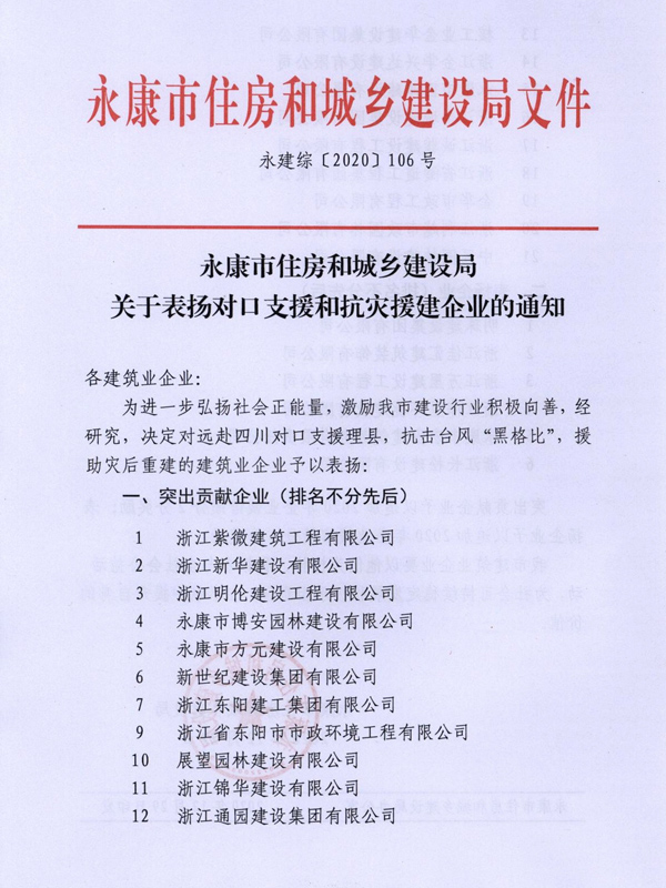 關(guān)于表揚對口支援和抗災(zāi)援建企業(yè)的通知