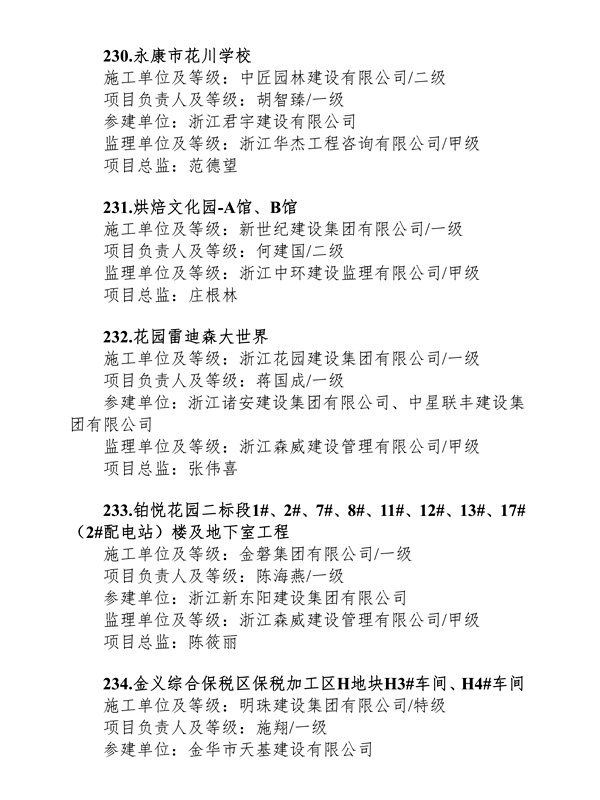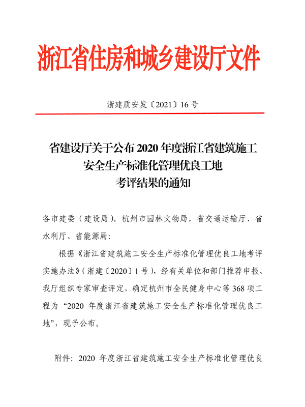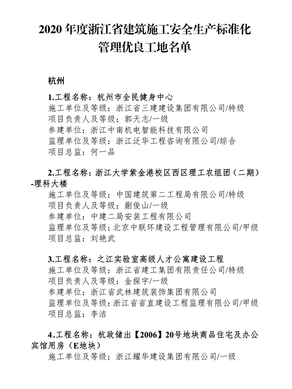2020年浙江省優(yōu)良工地