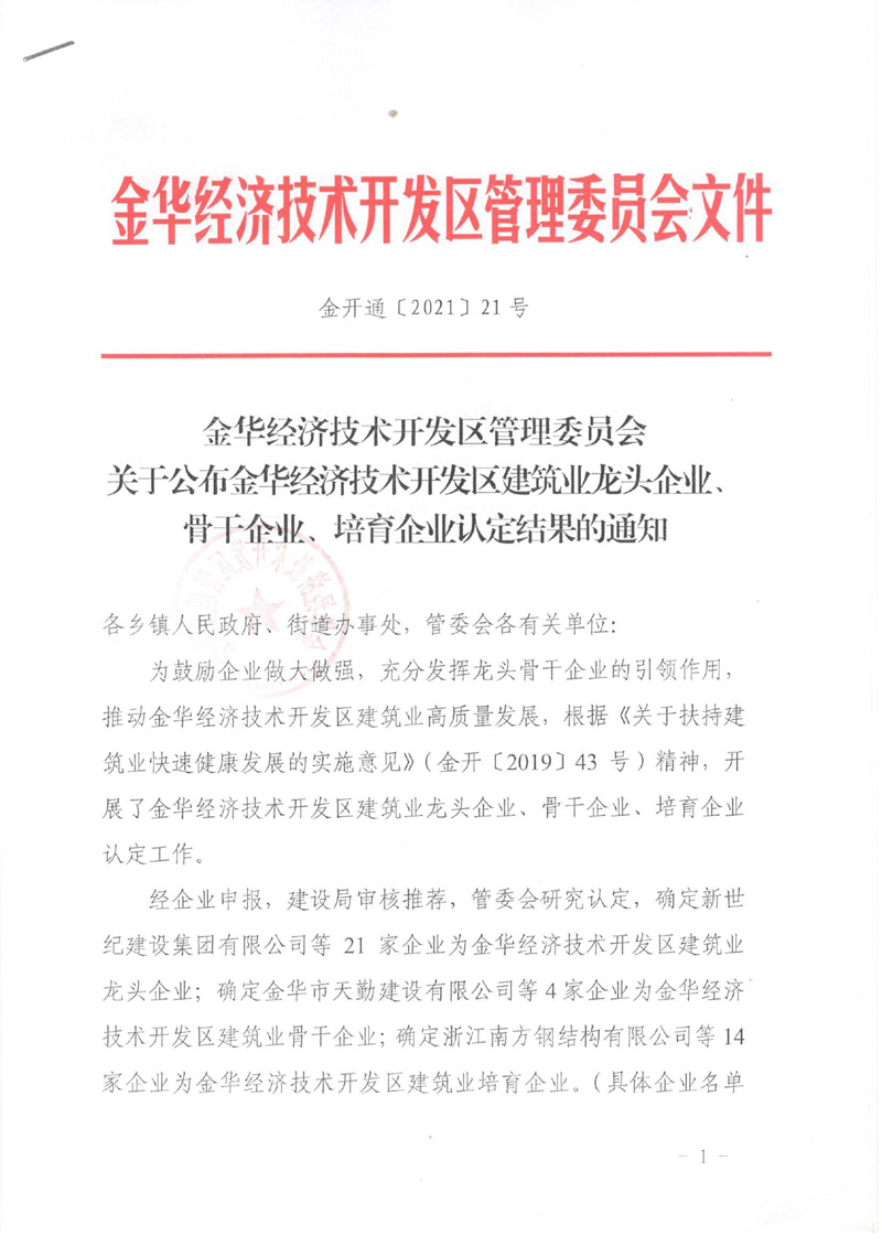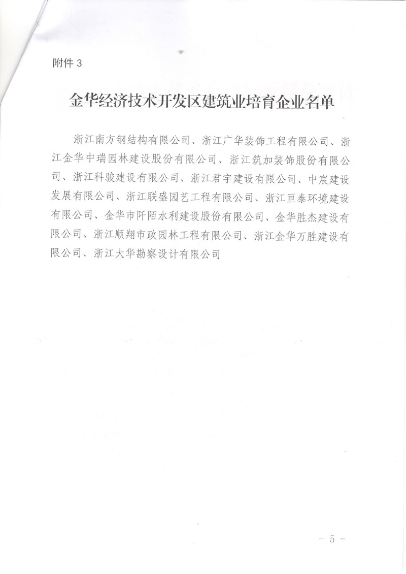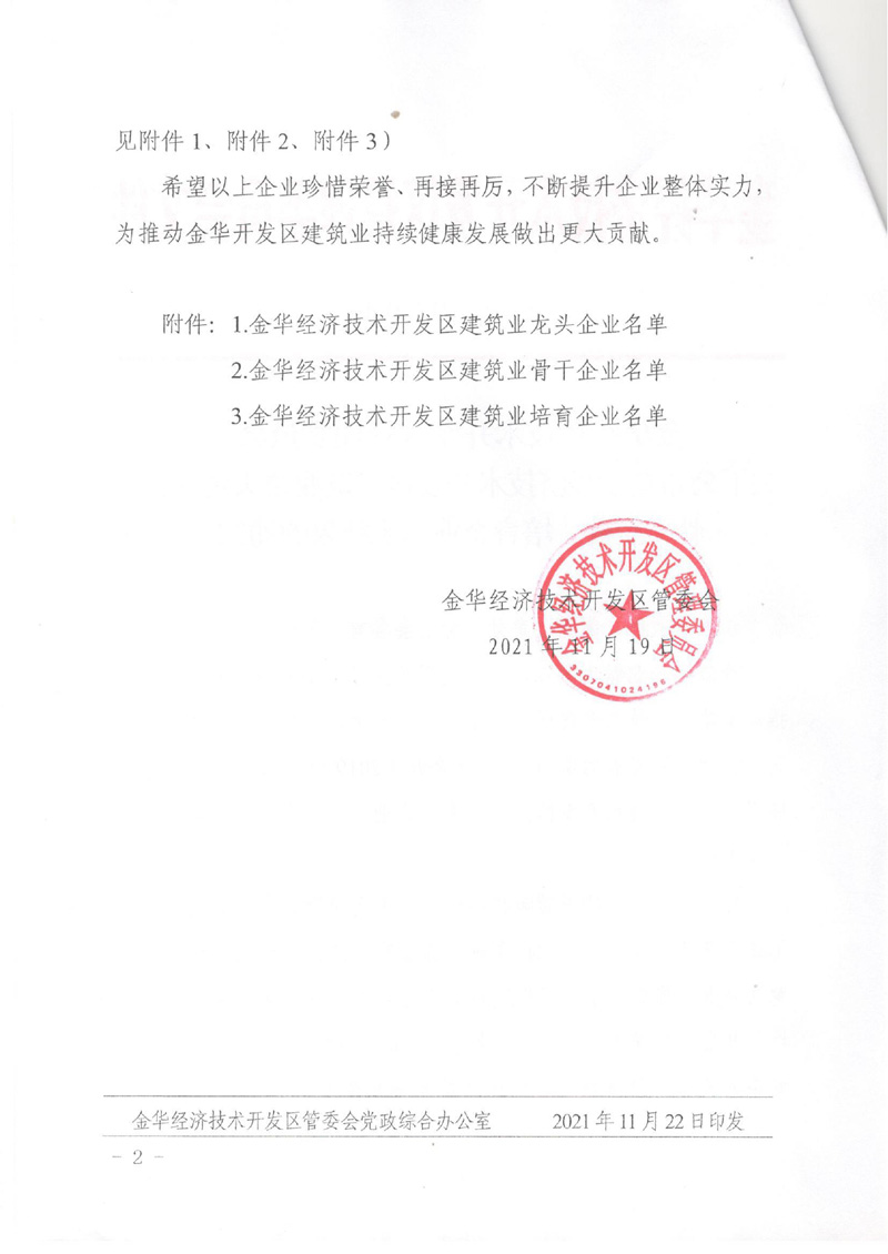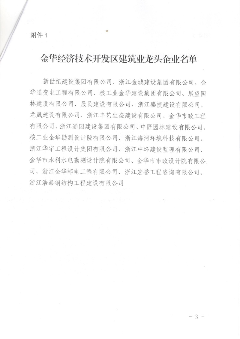 關于公布金華經濟技術開發(fā)區(qū)建筑業(yè)龍頭企業(yè)、骨干企業(yè)、培育企業(yè)認定結果的通知