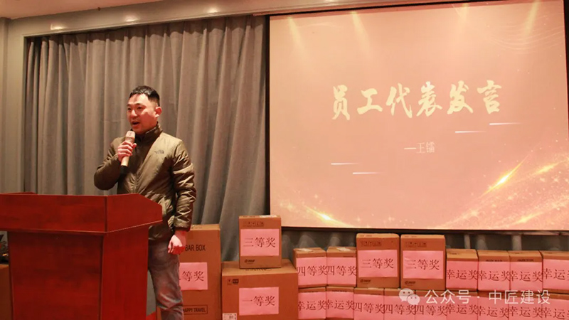 老員工們代表的是公司的光輝成果,而新員工們更象征著公司的未來,是公司的希望。新員工代表——工程部王鐳上臺(tái)發(fā)言。他表示感謝公司的信任與認(rèn)可,他目前剛加入中匠大家庭不久,會(huì)積極努力將自己的知識(shí)運(yùn)用到每日工作中,為公司帶來新的能量和力量。