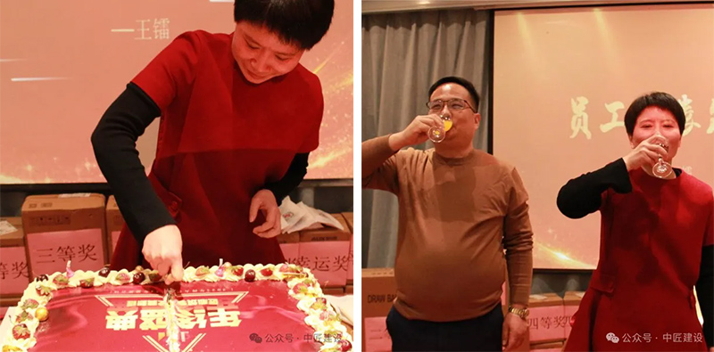 隨后,董事長(zhǎng)與董事長(zhǎng)夫人上臺(tái)親自為大家切年會(huì)蛋糕,并與大家共同舉杯慶祝中匠更美好的未來。